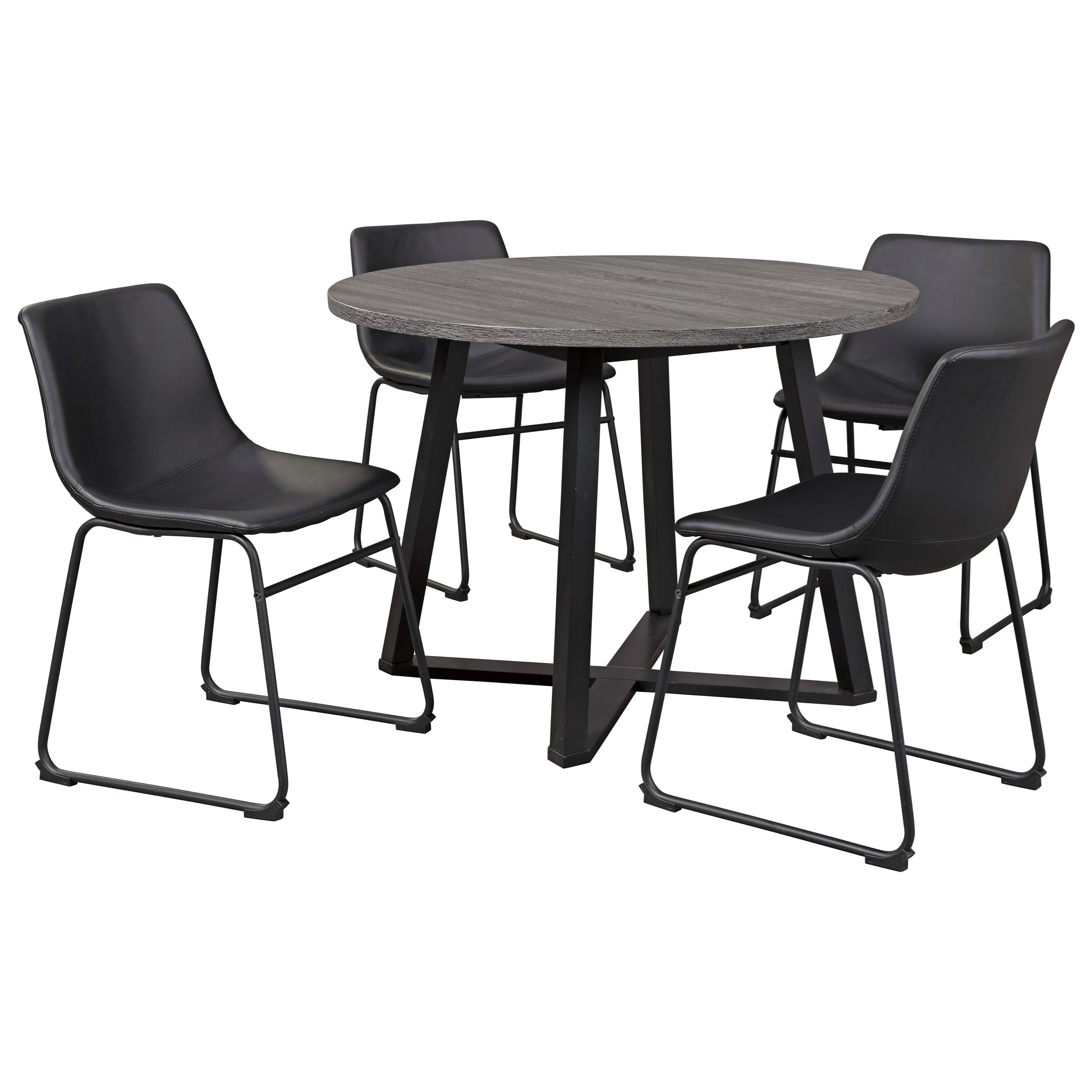 Ashley Signature Design Centiar 5 Piece Round Dining Table Set With Gray Faux Leather Chairs Dunk Bright Furniture Dining 5 Piece Sets