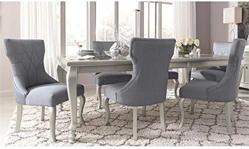 This set includes a dining table and four chairs. Made with paint grade materials including a stipple look with hardwood solids in a mid sheen silver paint finish. Signature design by ashley.