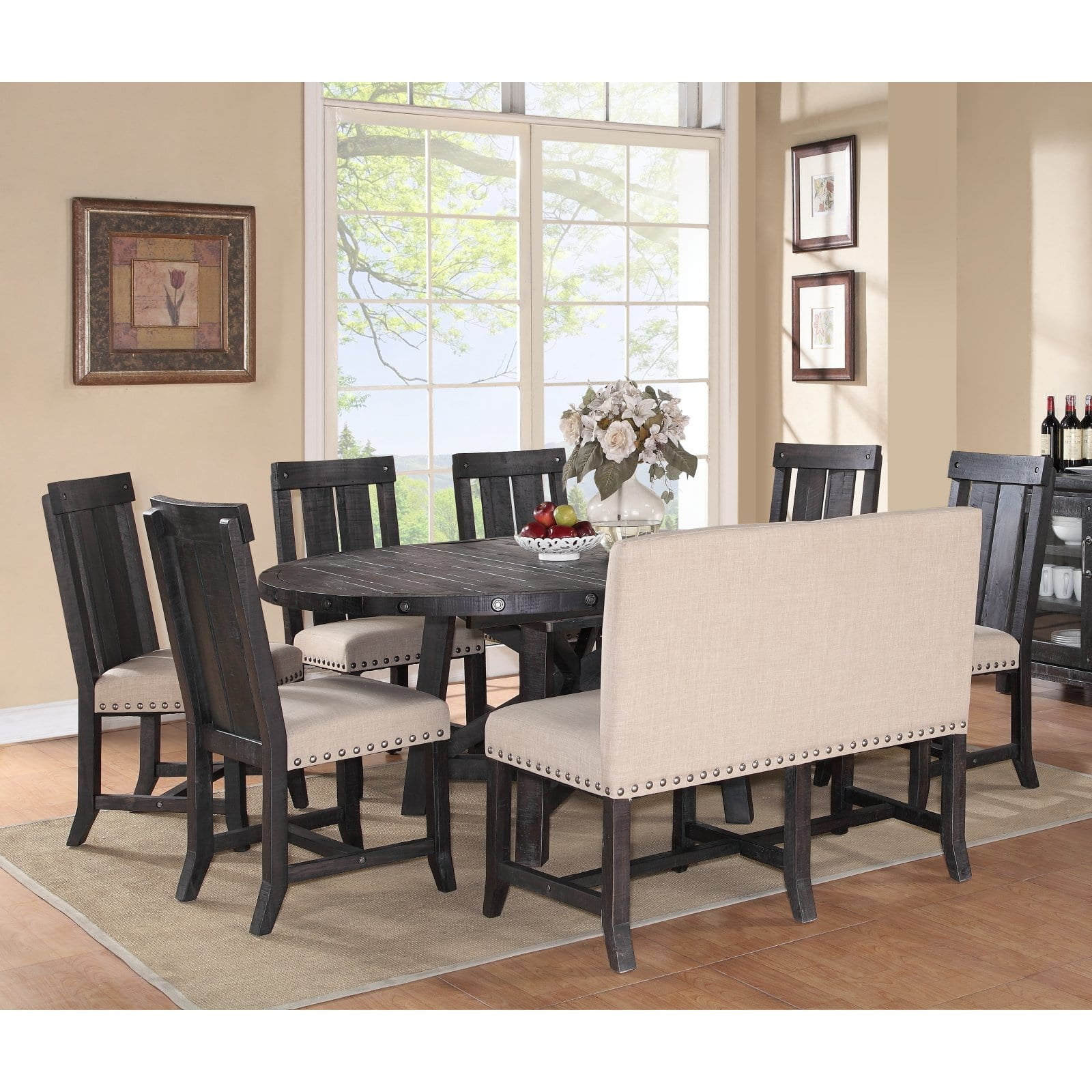 Modus Yosemite 8 Piece Oval Dining Table Set With Wood Chairs And Settee Walmart Com Walmart Com