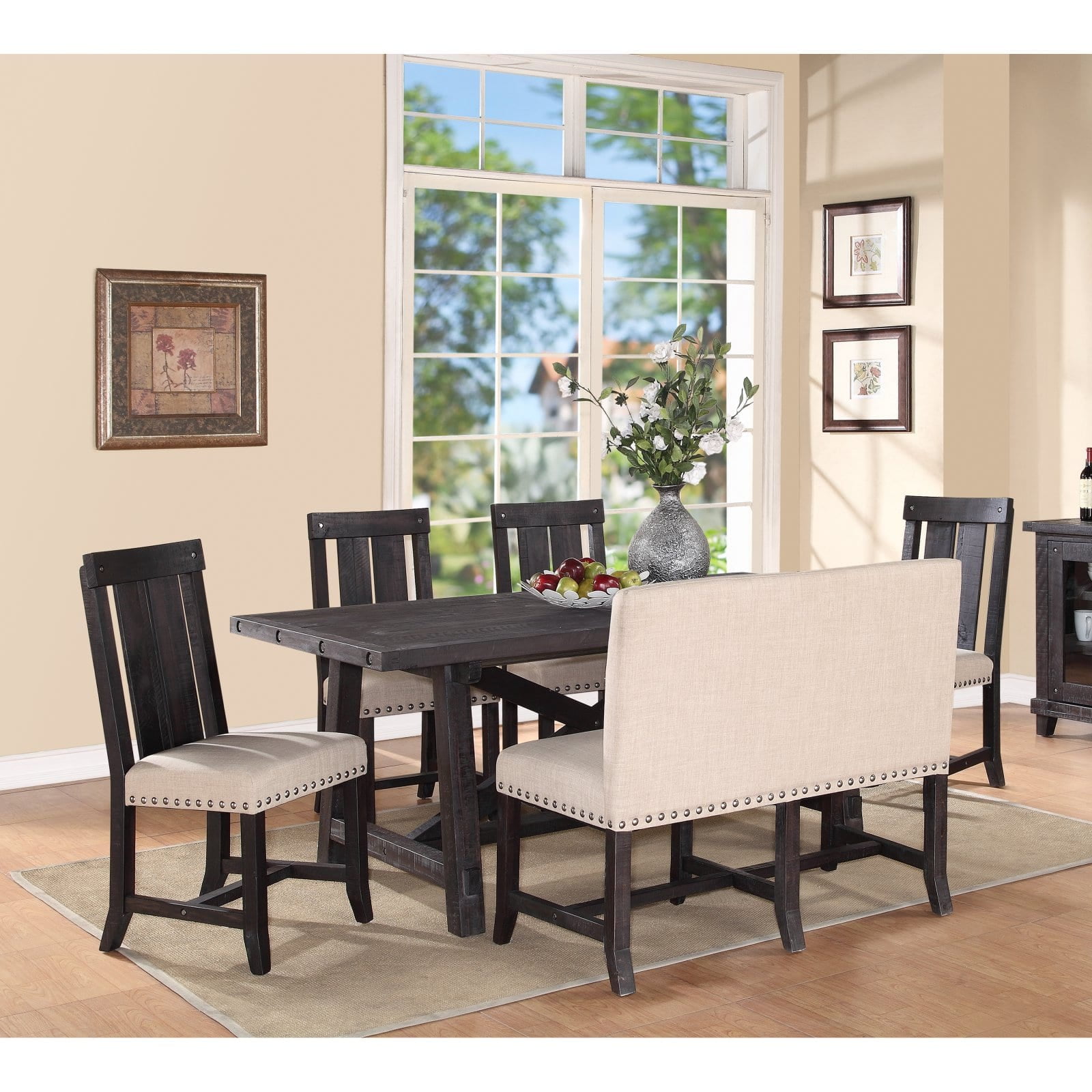 Modus Yosemite 6 Piece Rectangular Dining Table Set With Upholstered Chairs And Settee Walmart Com Walmart Com