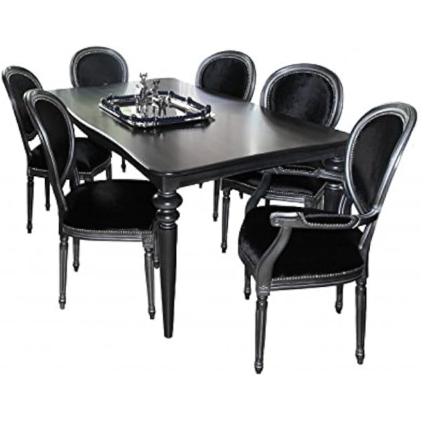 Casa Padrino Design Dining Room Set Black Silver Extendable Dining Table 6 Chairs Amazon Co Uk Kitchen Home