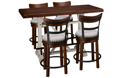 The Valebeck White Brown 6 Pc Rectangular Counter Table 4 Swivel Barstools Server Available At Payless Furniture And Mattress Serving Columbus Ohio And Surrounding Areas