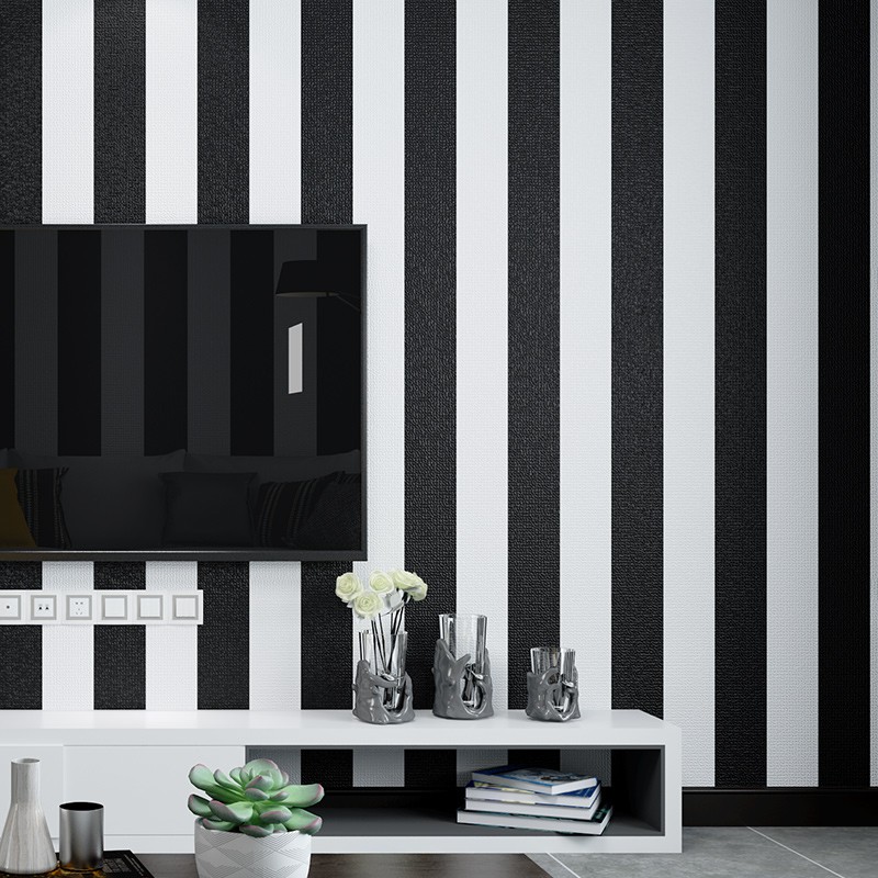 Simple Modern Black And White Striped Pvc Waterproof Wallpaper